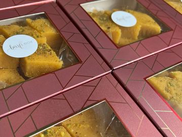 Our Original Besan topped with crushed pistachio. Minimum 15 boxes.
