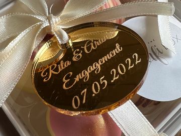 Choose your own shape and text. Available in silver and gold mirrored acrylic.